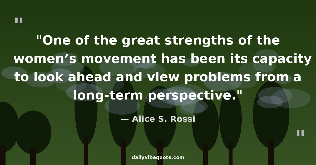"One of the great strengths of the women’s movement has been its capacity to look ahead and view problems from a long-term perspective."