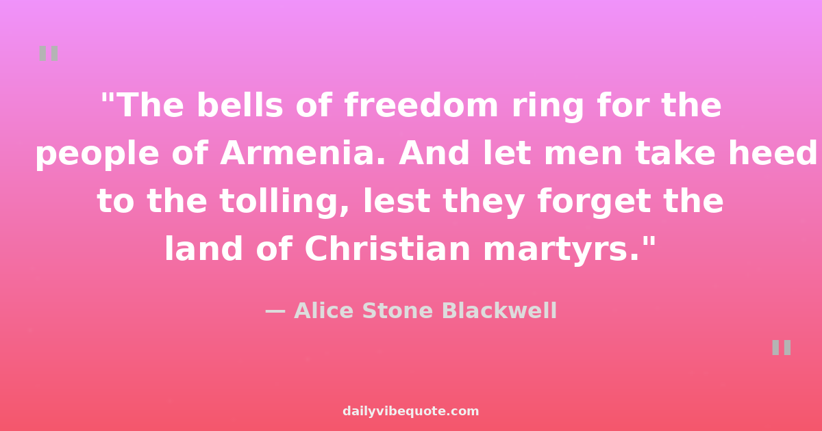"The bells of freedom ring for the people of Armenia. And let men take heed to the tolling, lest they forget the land of Christian martyrs."
