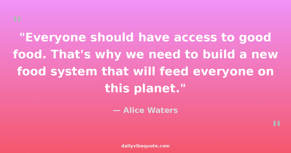 "Everyone should have access to good food. That's why we need to build a new food system that will feed everyone on this planet."