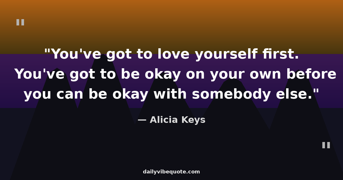"You've got to love yourself first. You've got to be okay on your own before you can be okay with somebody else."