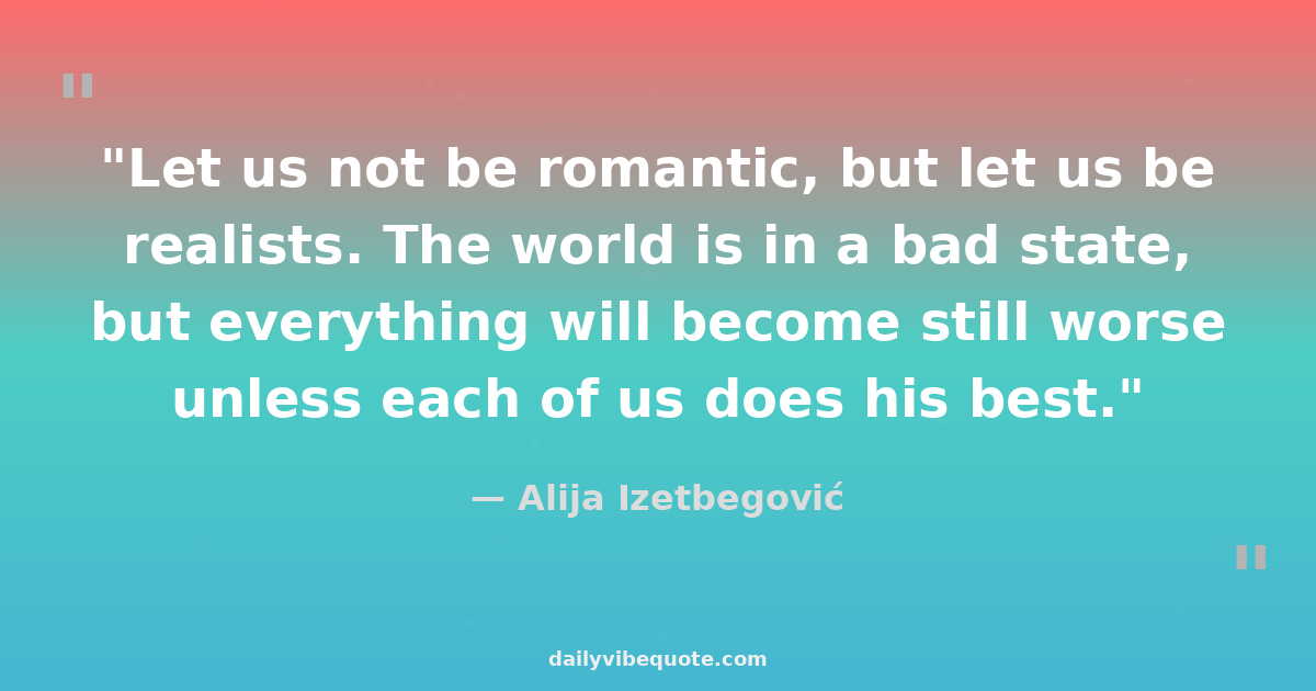 "Let us not be romantic, but let us be realists. The world is in a bad state, but everything will become still worse unless each of us does his best."