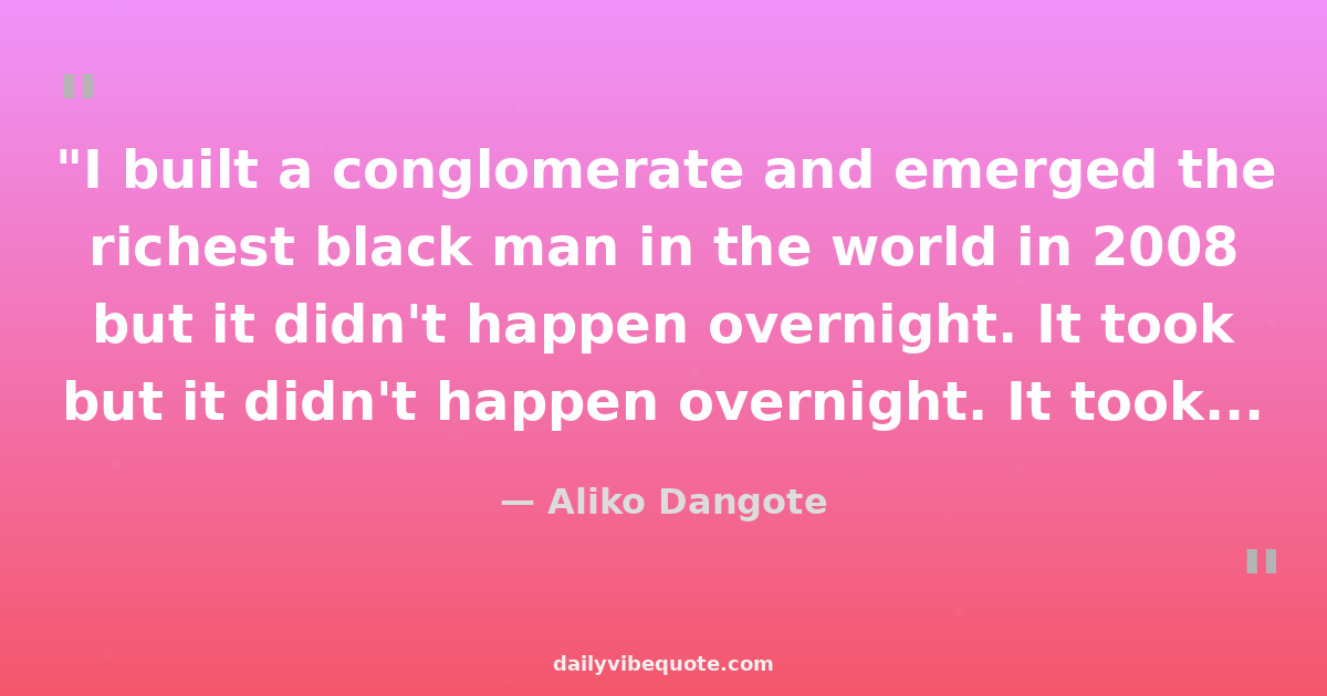 "I built a conglomerate and emerged the richest black man in the world in 2008 but it didn't happen overnight. It took me 30 years to get to where I am today. Youths of today aspire to be like me but they want to achieve it overnight. It's not going to work. To build a successful business, you must start small and dream big."