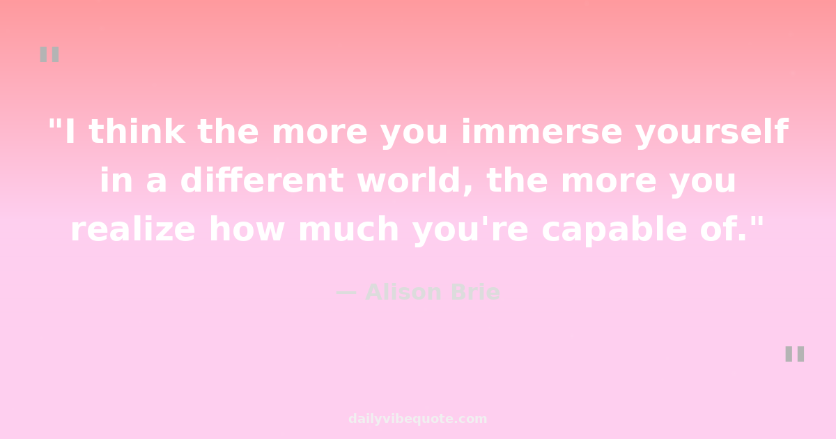 "I think the more you immerse yourself in a different world, the more you realize how much you're capable of."