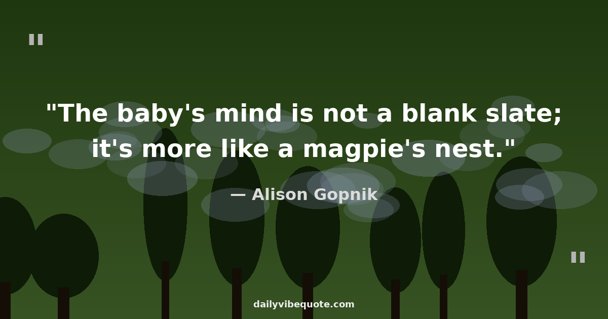 "The baby's mind is not a blank slate; it's more like a magpie's nest."