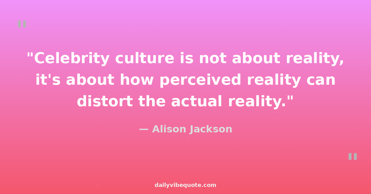 "Celebrity culture is not about reality, it's about how perceived reality can distort the actual reality."