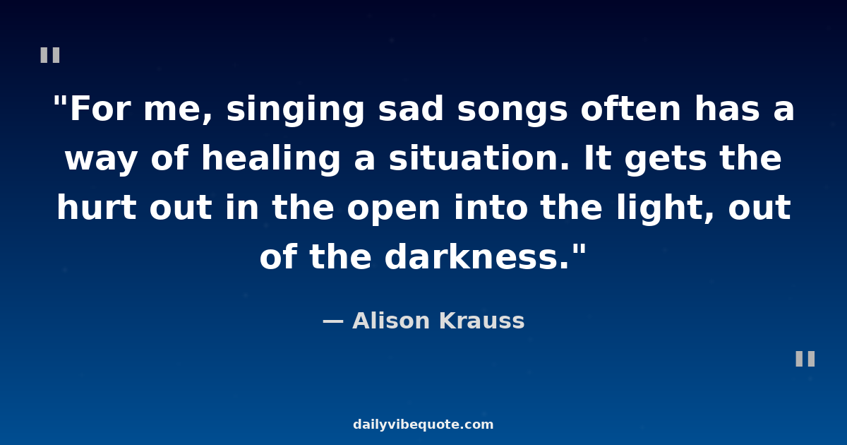 "For me, singing sad songs often has a way of healing a situation. It gets the hurt out in the open into the light, out of the darkness."