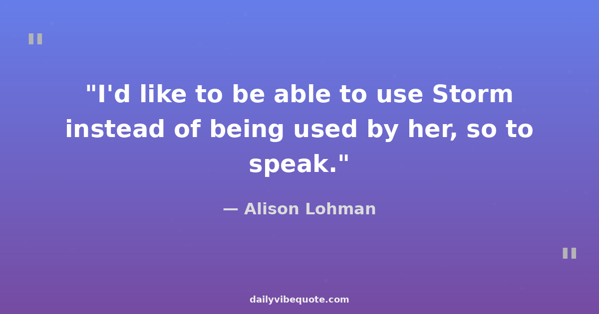 "I'd like to be able to use Storm instead of being used by her, so to speak."