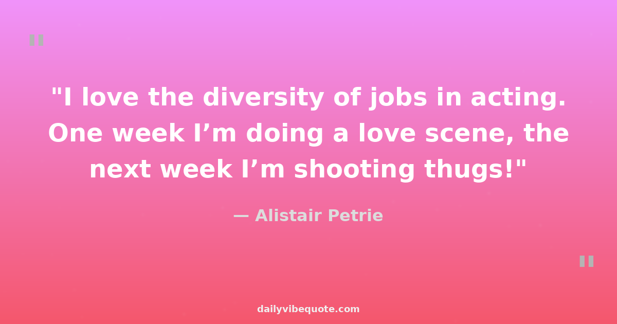 "I love the diversity of jobs in acting. One week I’m doing a love scene, the next week I’m shooting thugs!"