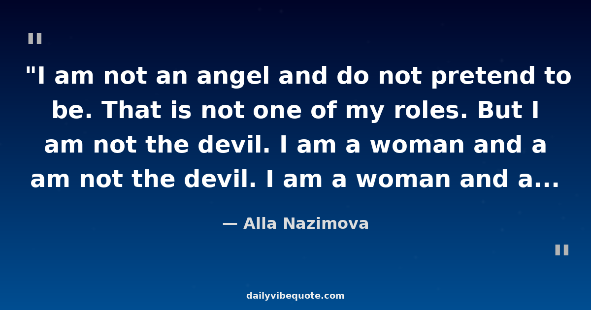 "I am not an angel and do not pretend to be. That is not one of my roles. But I am not the devil. I am a woman and a serious artist, and I would like so to be judged."