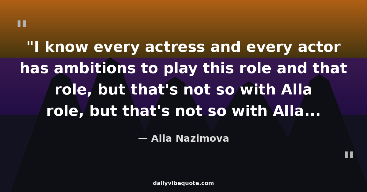 "I know every actress and every actor has ambitions to play this role and that role, but that's not so with Alla Nazimova. Alla Nazimova is ambitious to create new roles."