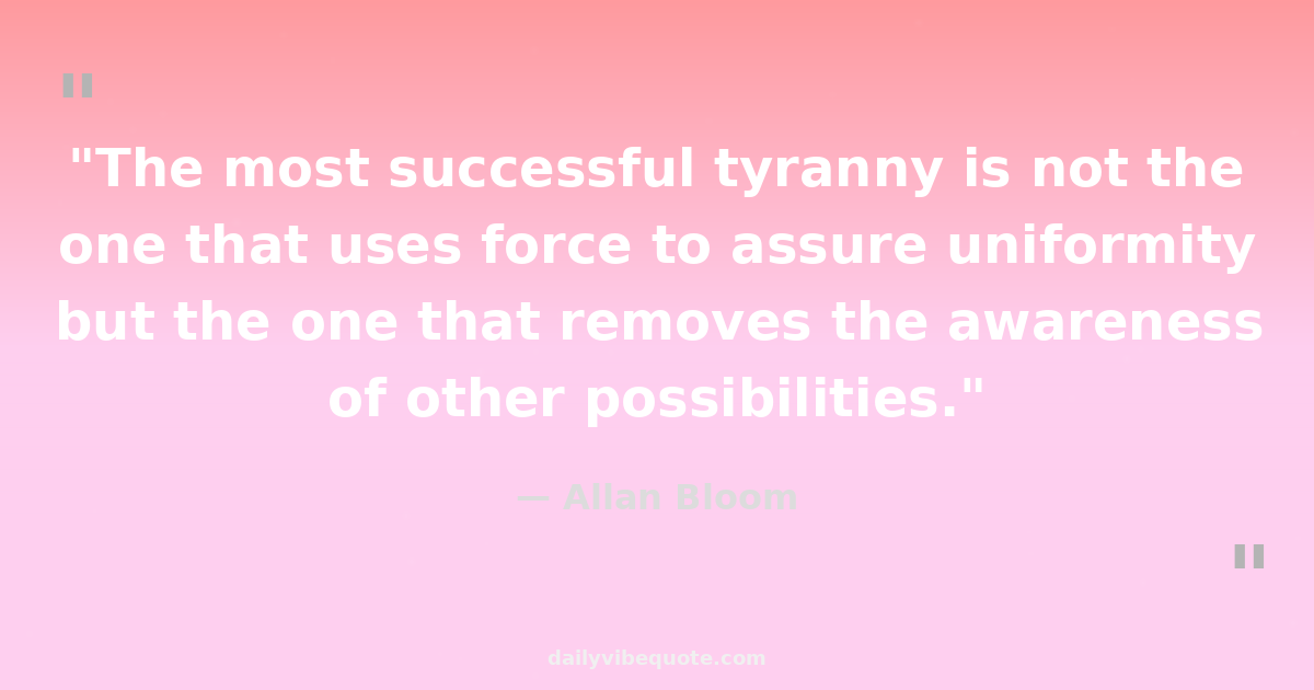 "The most successful tyranny is not the one that uses force to assure uniformity but the one that removes the awareness of other possibilities."