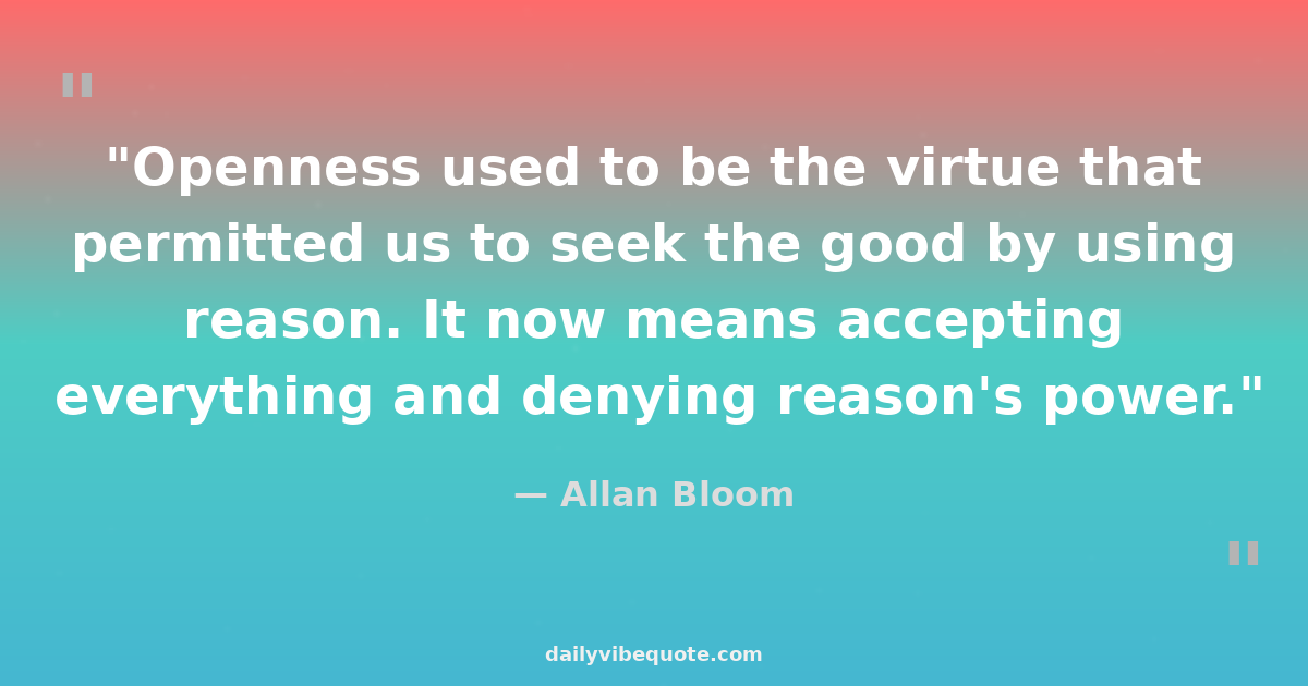 "Openness used to be the virtue that permitted us to seek the good by using reason. It now means accepting everything and denying reason's power."