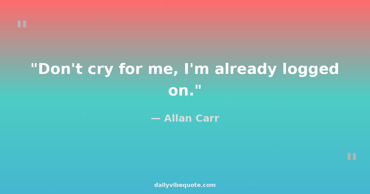 "Don't cry for me, I'm already logged on."