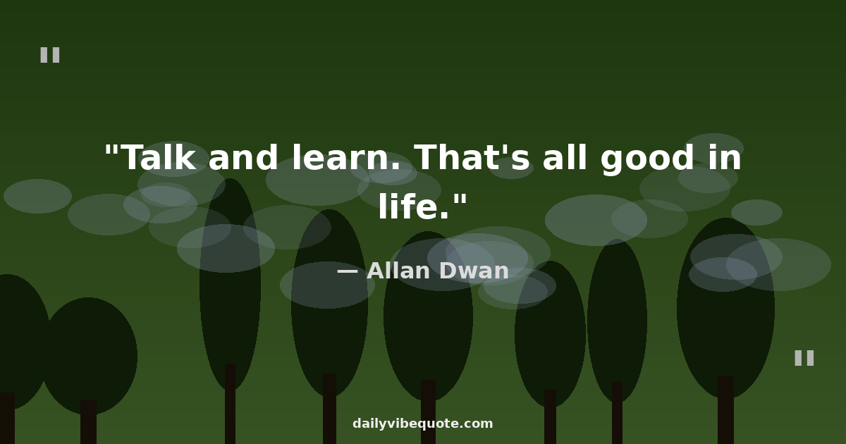 "Talk and learn. That's all good in life."