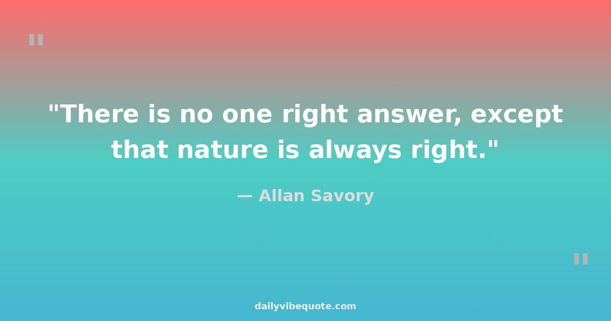 "There is no one right answer, except that nature is always right."