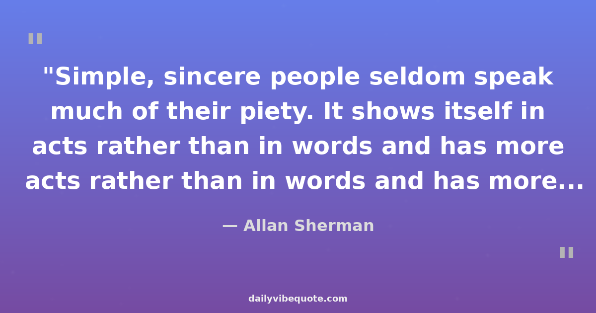 "Simple, sincere people seldom speak much of their piety. It shows itself in acts rather than in words and has more influence than homilies or protestations."