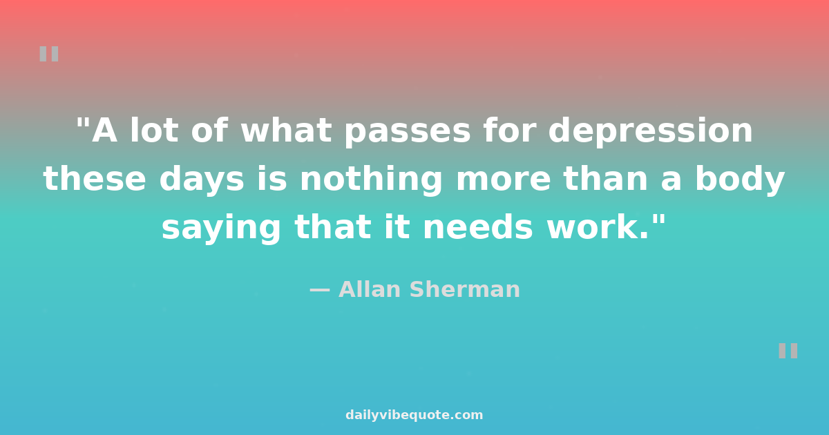 "A lot of what passes for depression these days is nothing more than a body saying that it needs work."