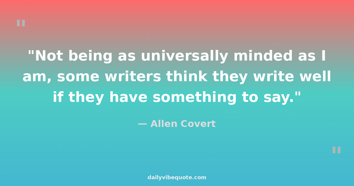 "Not being as universally minded as I am, some writers think they write well if they have something to say."