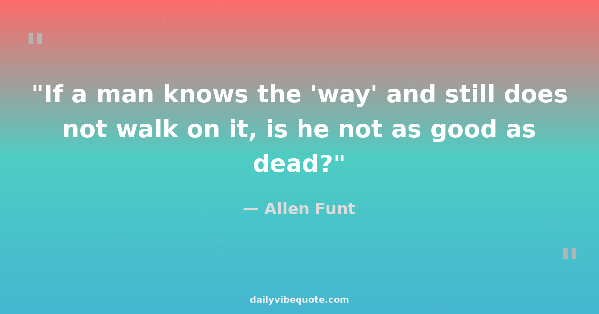 "If a man knows the 'way' and still does not walk on it, is he not as good as dead?"
