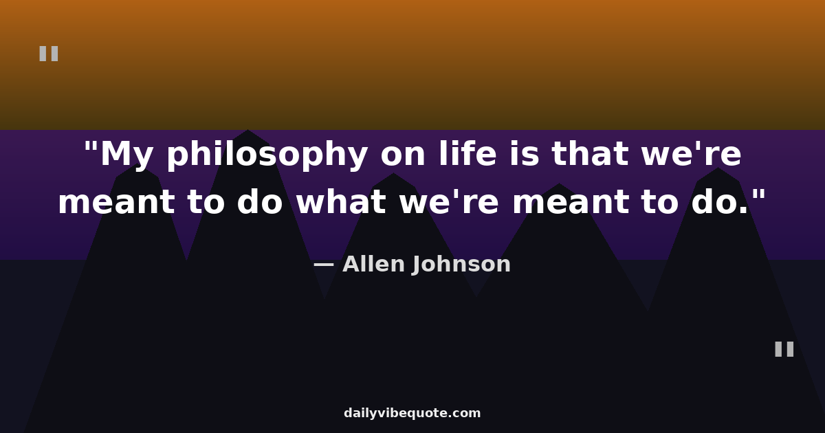 "My philosophy on life is that we're meant to do what we're meant to do."