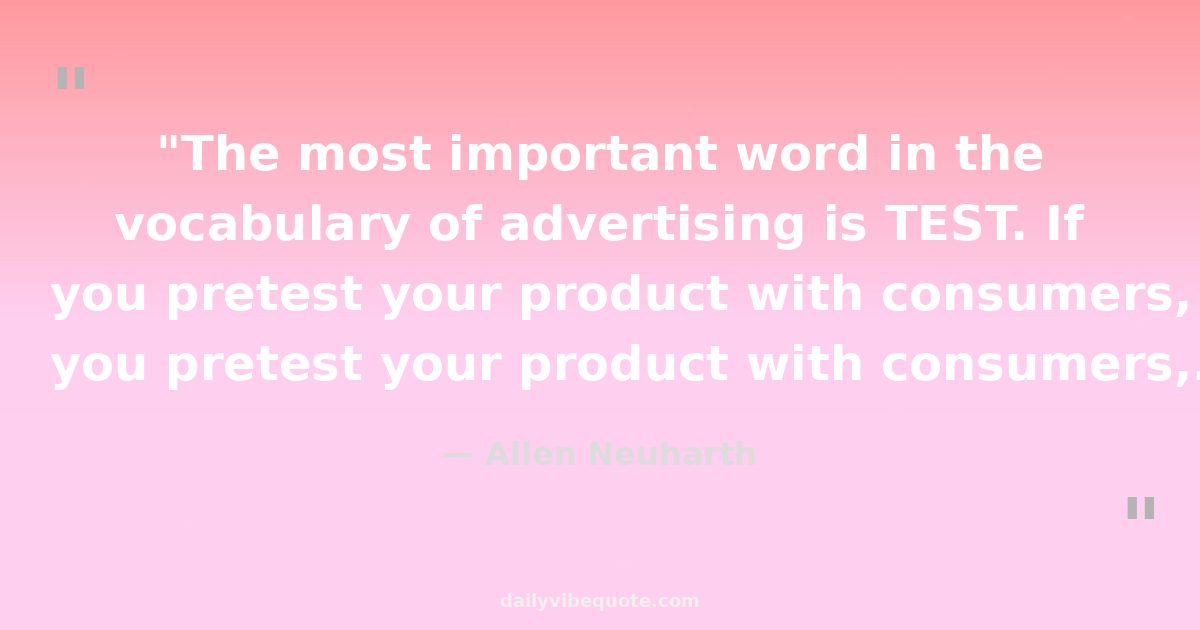 "The most important word in the vocabulary of advertising is TEST. If you pretest your product with consumers, and pretest your advertising, you will do well in the marketplace."