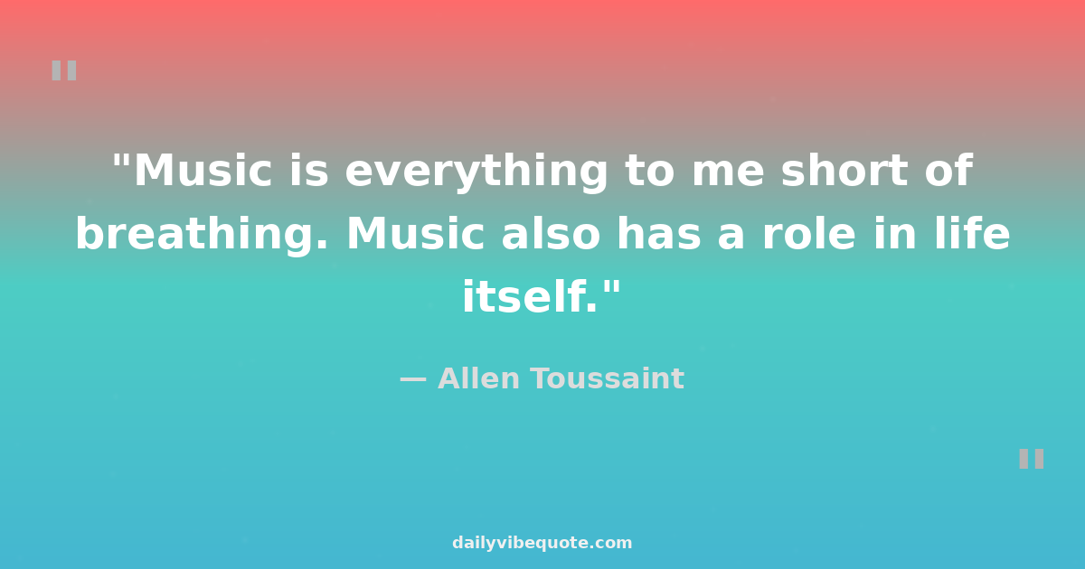 "Music is everything to me short of breathing. Music also has a role in life itself."