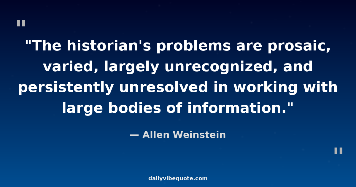 Allen Weinstein was an American historian, educator, and government official. He served as the Archivist of the United States from 2005 until his resignation in 2008. Weinstein was known for his expertise in foreign policy and intelligence matters. He authored several books on topics including Alger Hiss, the Cold War, and espionage. Weinstein was a respected scholar and public servant, contributing significantly to the field of history and archival studies.
