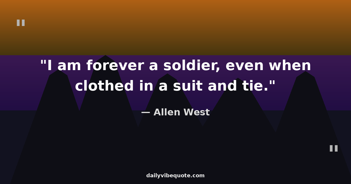 Allen West is an American politician, retired U.S. Army lieutenant colonel, and author. He served in the U.S. House of Representatives from 2011 to 2013, representing Florida's 22nd congressional district. West is known for his conservative views and outspoken advocacy for limited government and constitutional principles. Prior to his political career, he had a distinguished military service, with over 20 years of service in the U.S. Army, including deployments to combat zones in Iraq and Afghanistan.
