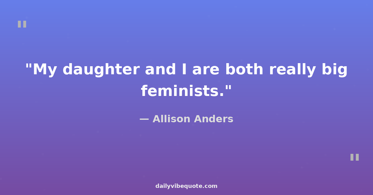 Allison Anders is an American film and television director, best known for her work on independent films. She was born on November 16, 1954, in Ashland, Kentucky. Anders gained recognition for her innovative storytelling and unique perspective on topics such as gender, race, and sexuality. Some of her notable works include "Gas Food Lodging" and "Mi Vida Loca." Throughout her career, she has been a pioneering voice in independent cinema, breaking barriers and inspiring future filmmakers.