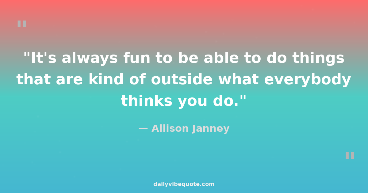 "It's always fun to be able to do things that are kind of outside what everybody thinks you do."