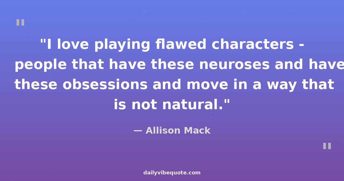 "I love playing flawed characters - people that have these neuroses and have these obsessions and move in a way that is not natural."