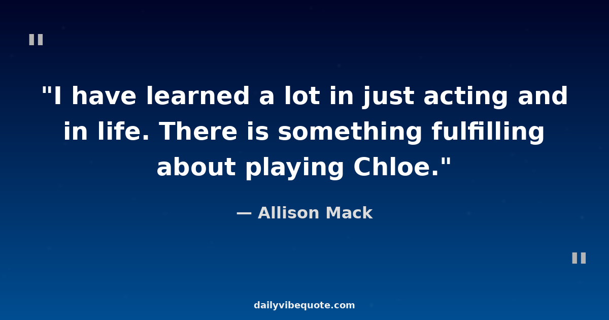 "I have learned a lot in just acting and in life. There is something fulfilling about playing Chloe."