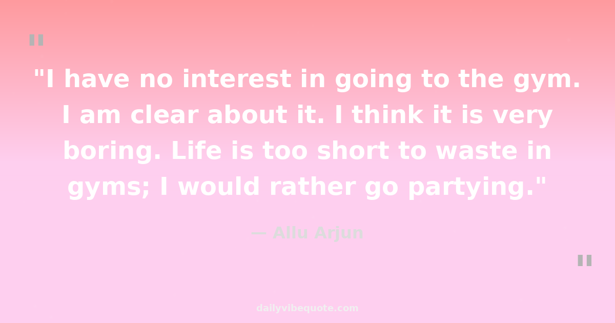"I have no interest in going to the gym. I am clear about it. I think it is very boring. Life is too short to waste in gyms; I would rather go partying."
