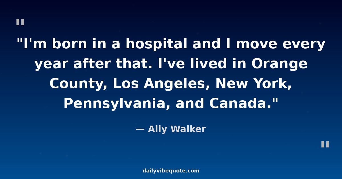 "I'm born in a hospital and I move every year after that. I've lived in Orange County, Los Angeles, New York, Pennsylvania, and Canada."
