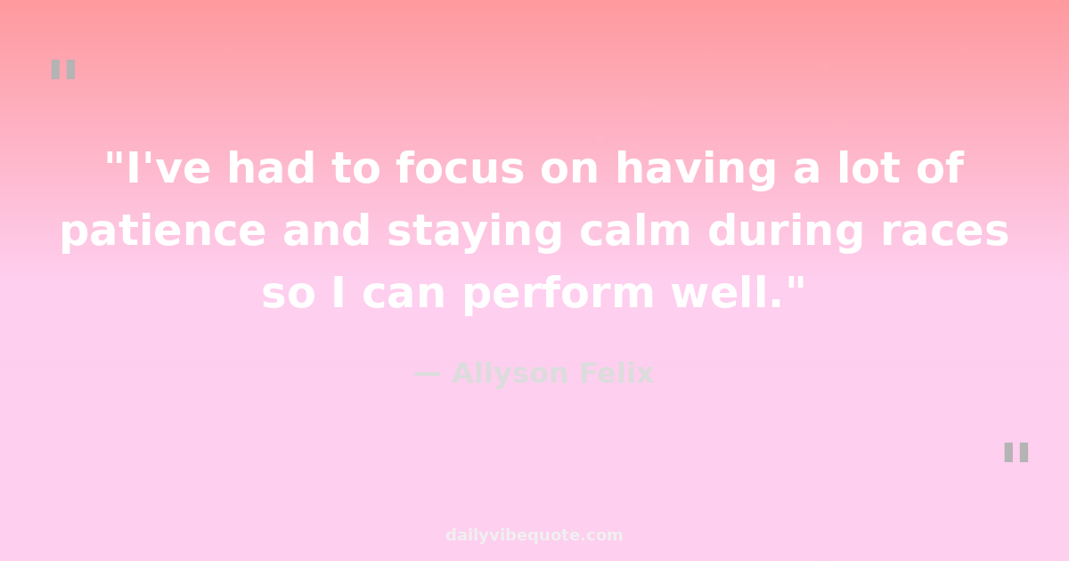 "I've had to focus on having a lot of patience and staying calm during races so I can perform well."