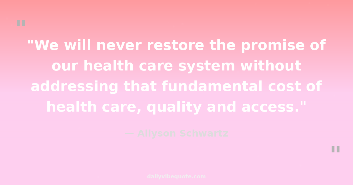 "We will never restore the promise of our health care system without addressing that fundamental cost of health care, quality and access."