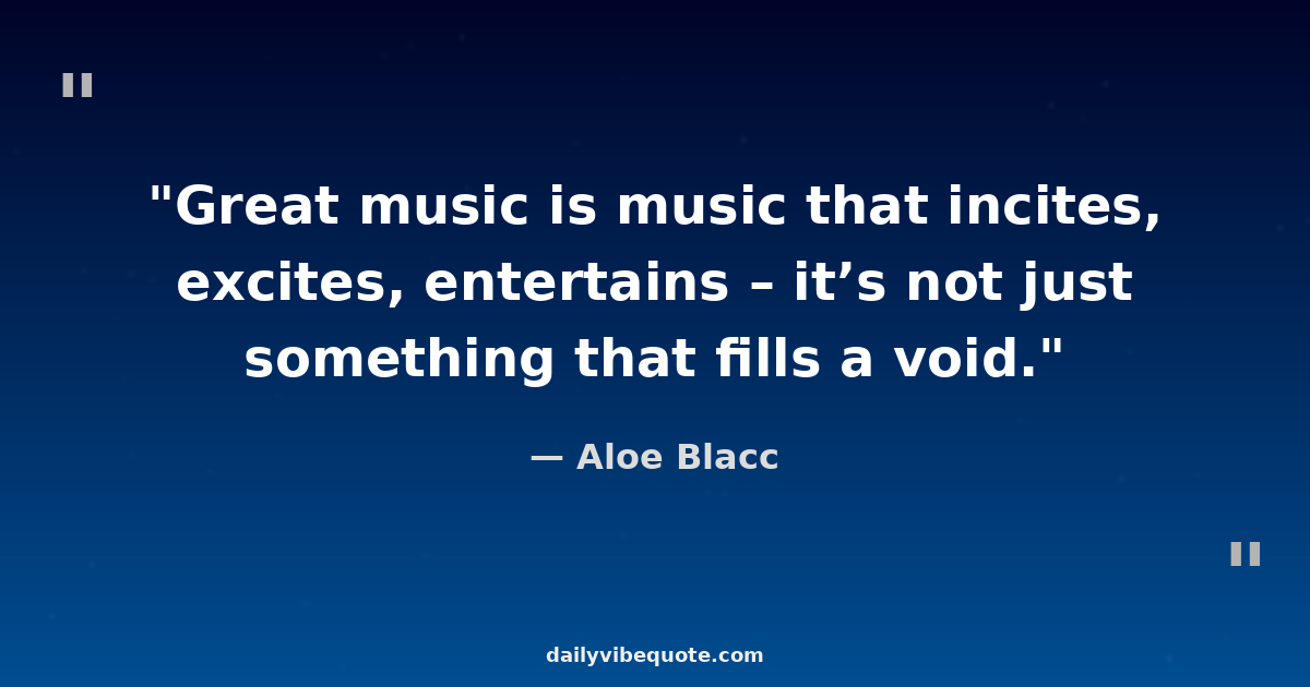 "Great music is music that incites, excites, entertains – it’s not just something that fills a void."
