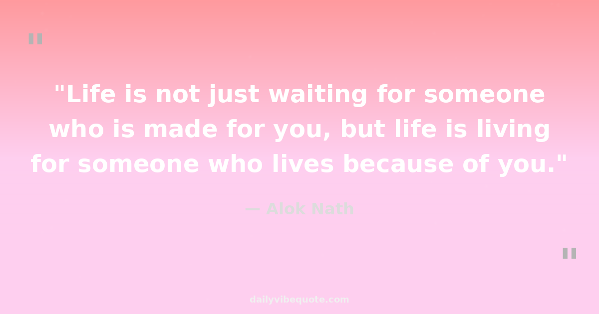 "Life is not just waiting for someone who is made for you, but life is living for someone who lives because of you."