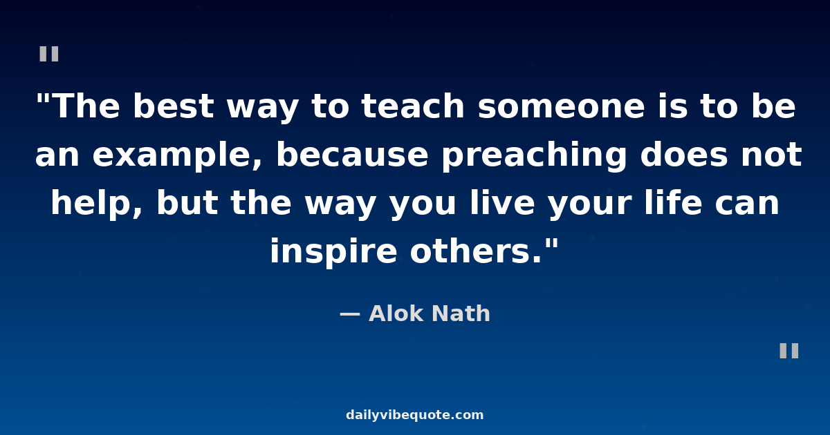 "The best way to teach someone is to be an example, because preaching does not help, but the way you live your life can inspire others."