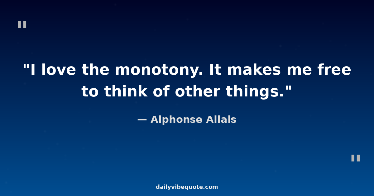 "I love the monotony. It makes me free to think of other things."