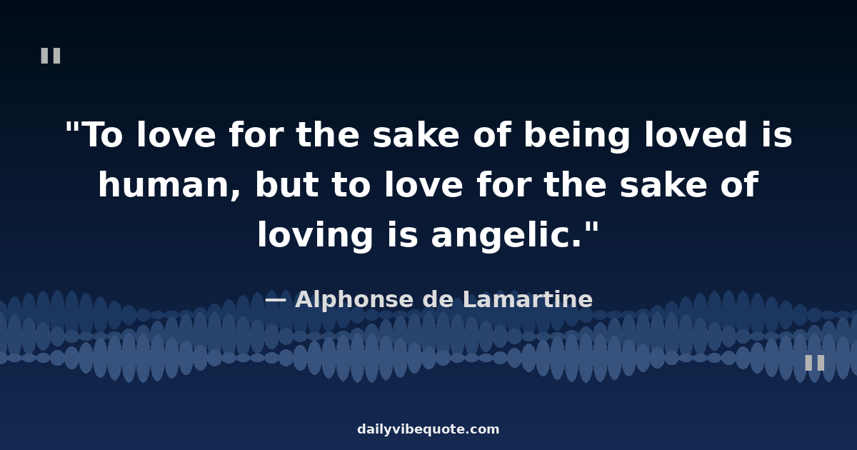 "To love for the sake of being loved is human, but to love for the sake of loving is angelic."