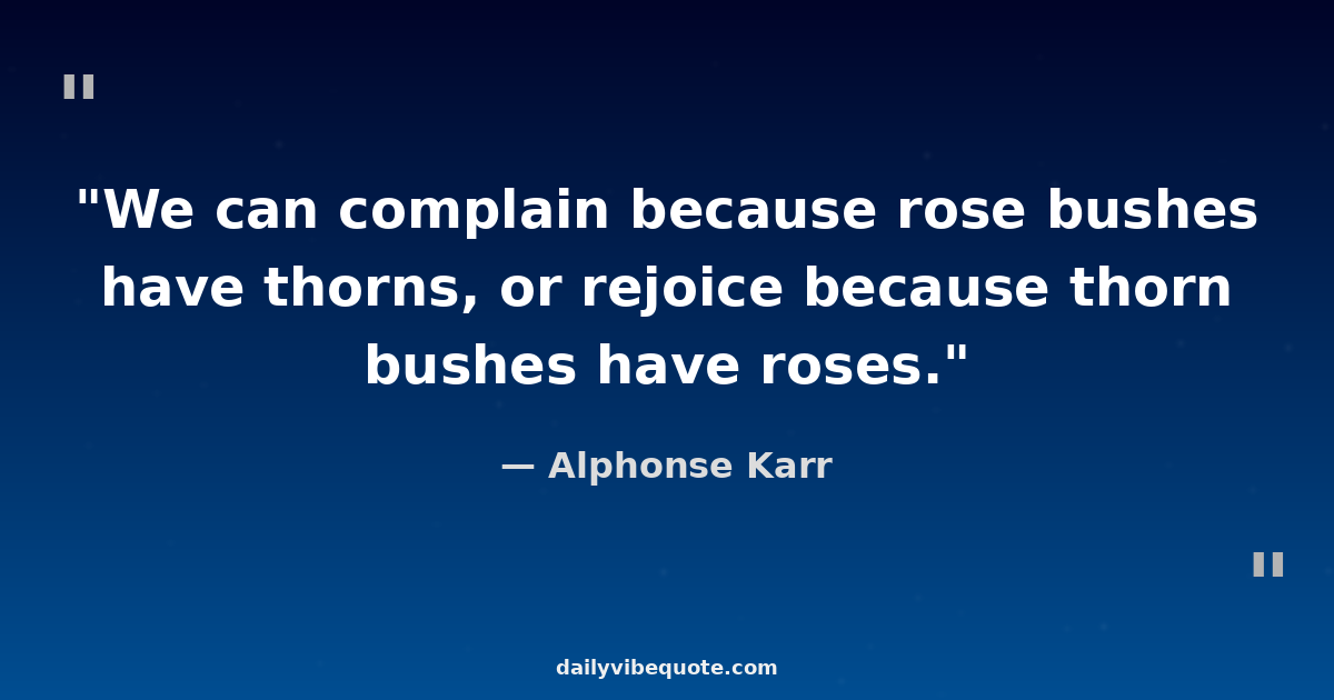 "We can complain because rose bushes have thorns, or rejoice because thorn bushes have roses."