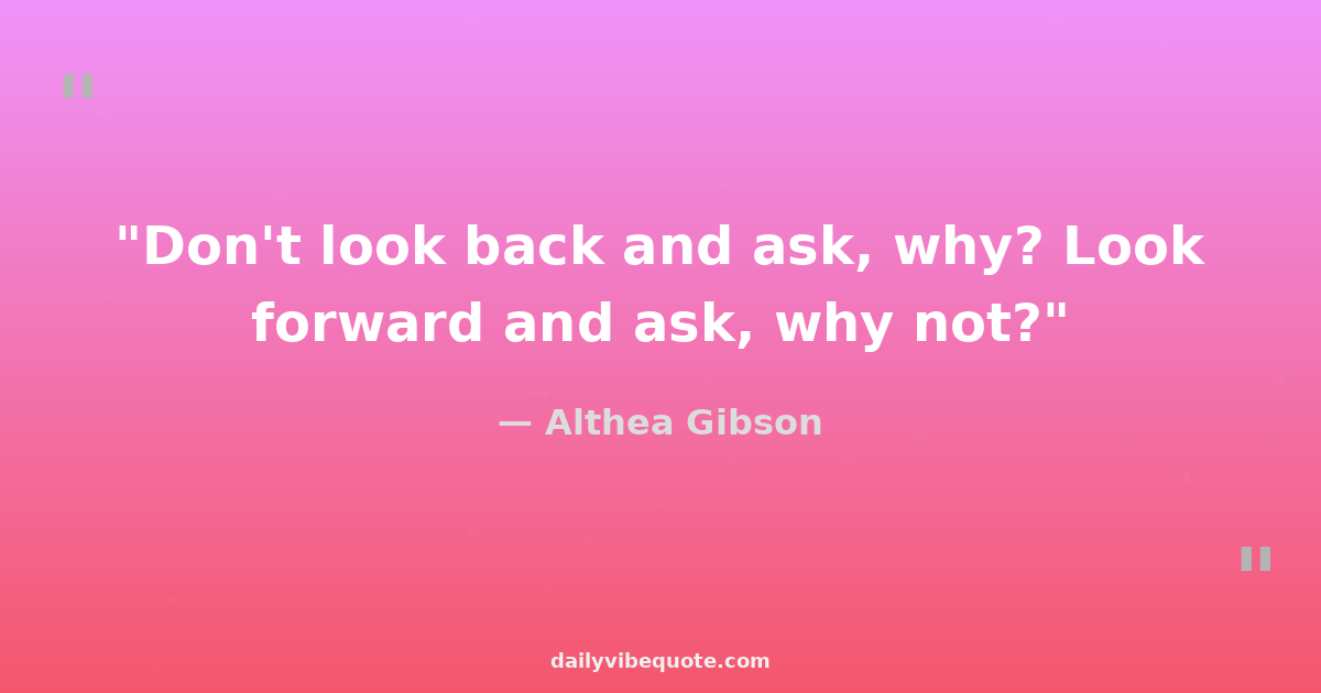 "Don't look back and ask, why? Look forward and ask, why not?"