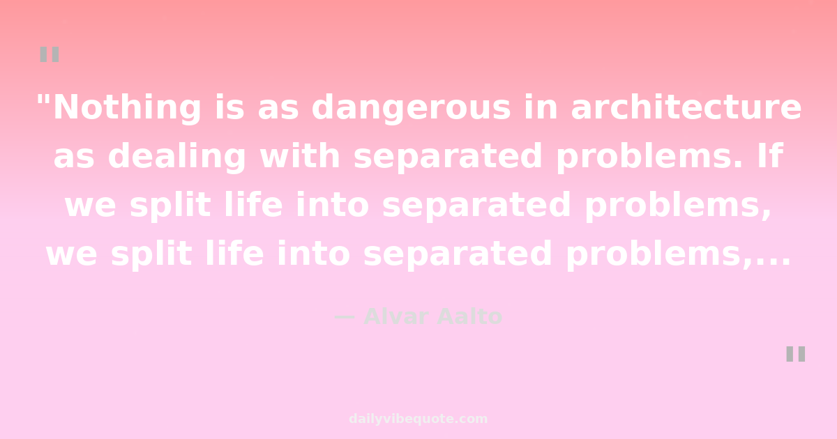 "Nothing is as dangerous in architecture as dealing with separated problems. If we split life into separated problems, we split the possibilities to make good building art."