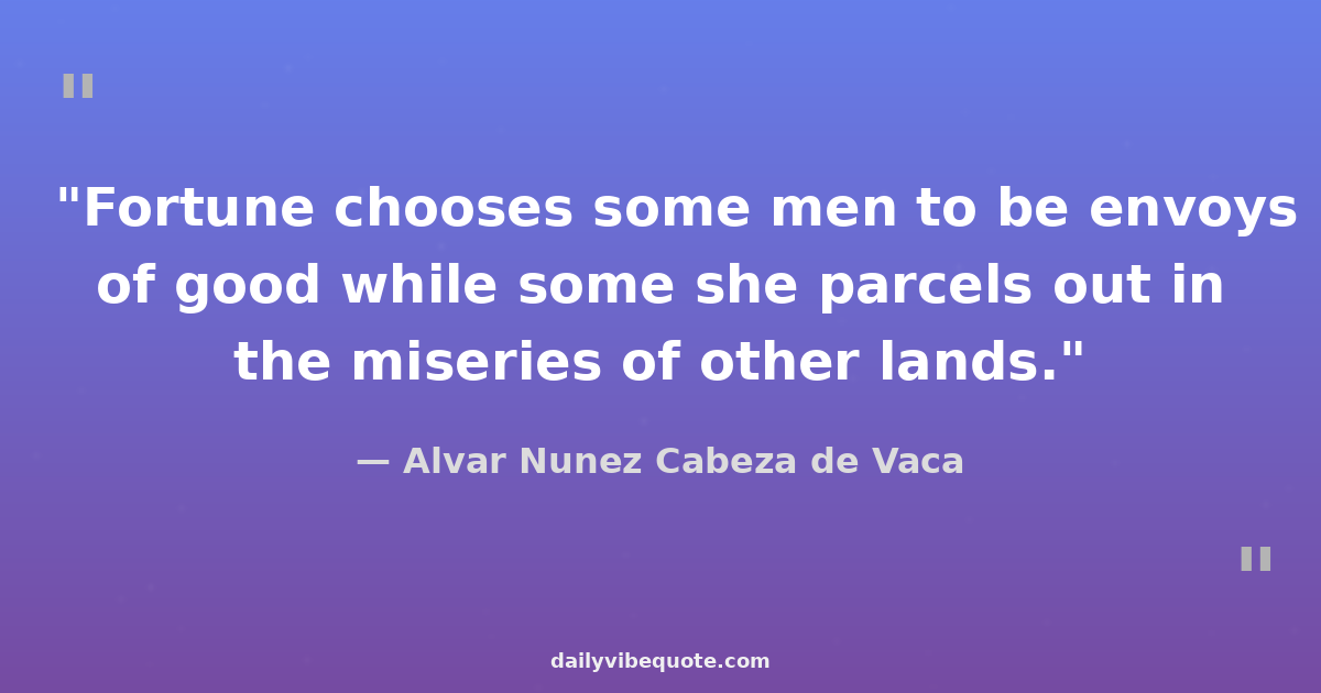 "Fortune chooses some men to be envoys of good while some she parcels out in the miseries of other lands."