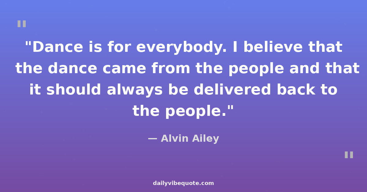 "Dance is for everybody. I believe that the dance came from the people and that it should always be delivered back to the people."