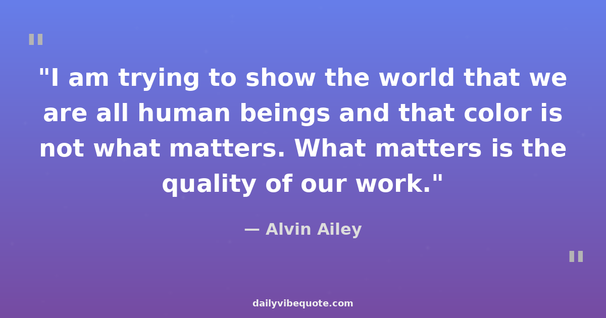 "I am trying to show the world that we are all human beings and that color is not what matters. What matters is the quality of our work."