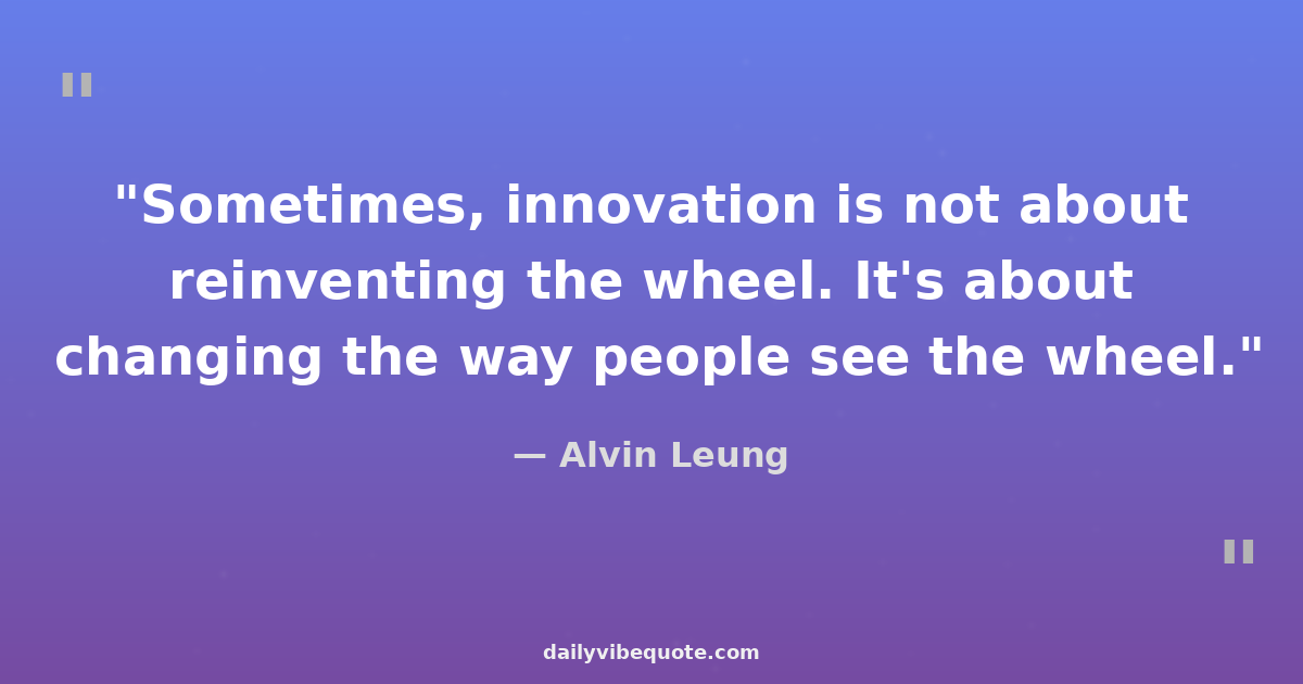 "Sometimes, innovation is not about reinventing the wheel. It's about changing the way people see the wheel."