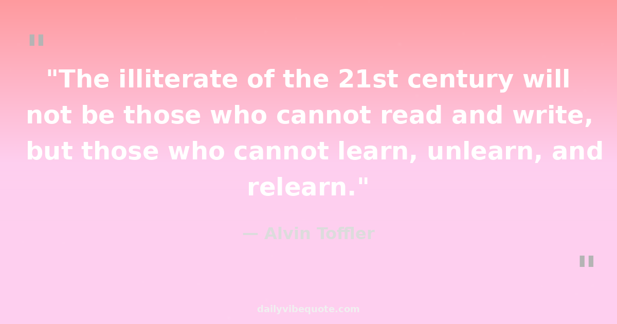 "The illiterate of the 21st century will not be those who cannot read and write, but those who cannot learn, unlearn, and relearn."