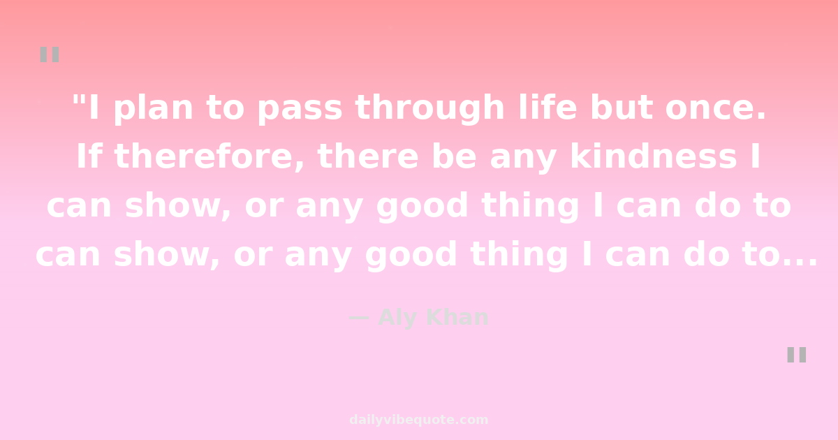 "I plan to pass through life but once. If therefore, there be any kindness I can show, or any good thing I can do to any fellow being, let me do it now, and not defer or neglect it, as I shall not pass this way again."